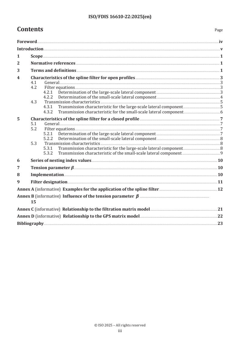 Keywords: ISO 16610-22, spline filters, profile filtration, GPS, cut‑off wavelength, tension parameter β, transmission characteristic, open profiles, closed profiles, roundness filtration.