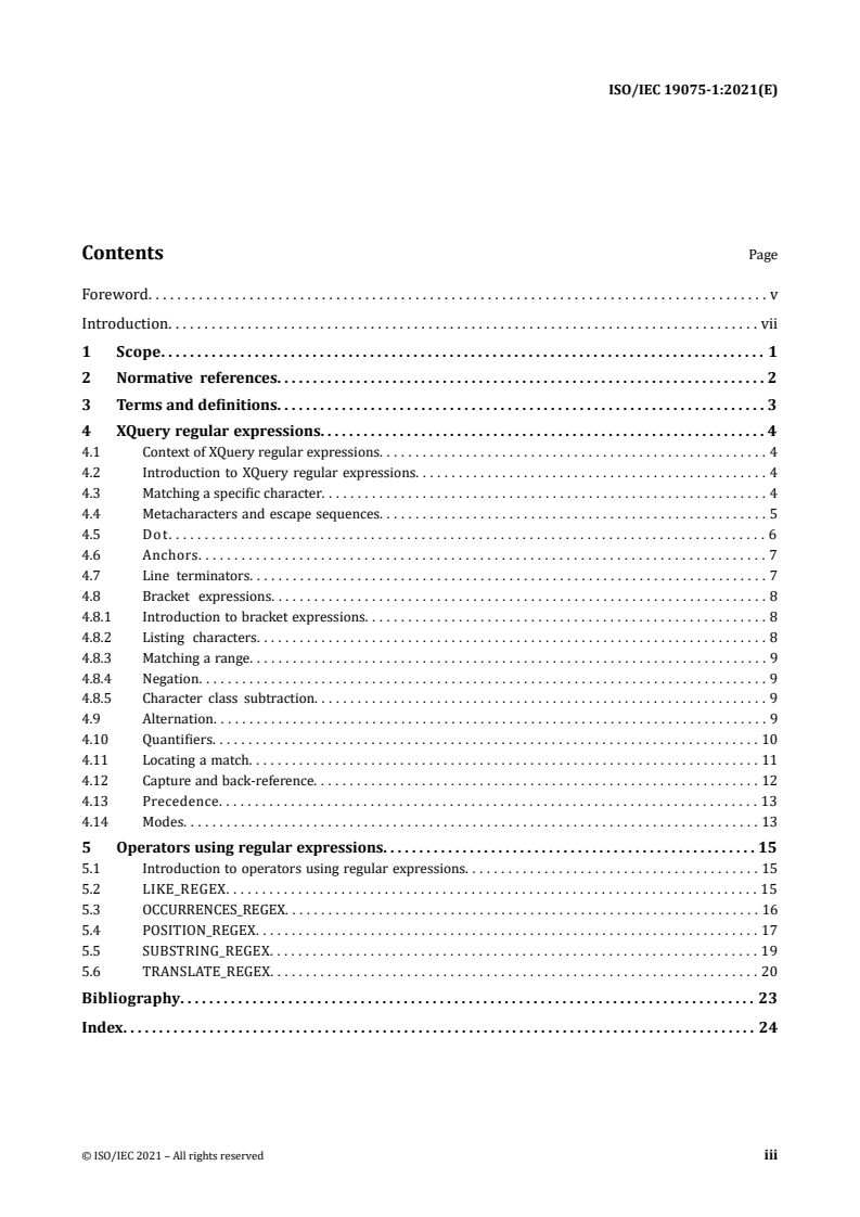 Keywords: ISO/IEC 19075-1:2021, XQuery regular expressions, SQL regex, LIKE_REGEX, POSITION_REGEX, OCCURRENCES_REGEX, SUBSTRING_REGEX, TRANSLATE_REGEX, SQL/XML, Unicode regular expressions.