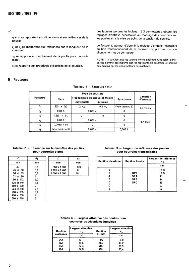 IS0 5294 : 1989, Transmissions synchrones par courroies -