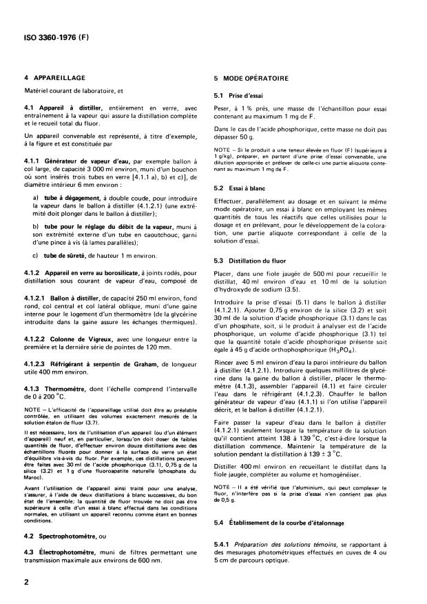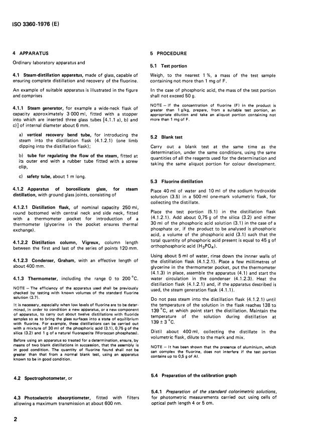 Keywords: ISO 3360:1976, fluorine determination, phosphoric acid, sodium phosphates, alizarin complexone, lanthanum nitrate, photometric method, steam distillation, pH 4.6, acetone, 600 nm.
