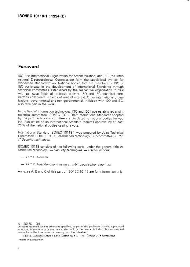 International Standard lSO/lEC 10118-1 was prepared by Joint Technical