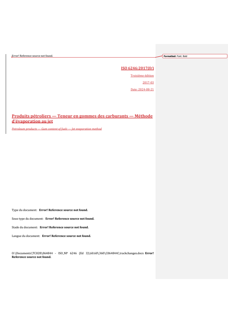 REDLINE ISO 6246:2017 - Produits pétroliers — Teneur en gommes des carburants — Méthode d'évaporation au jet Released:9/11/2024