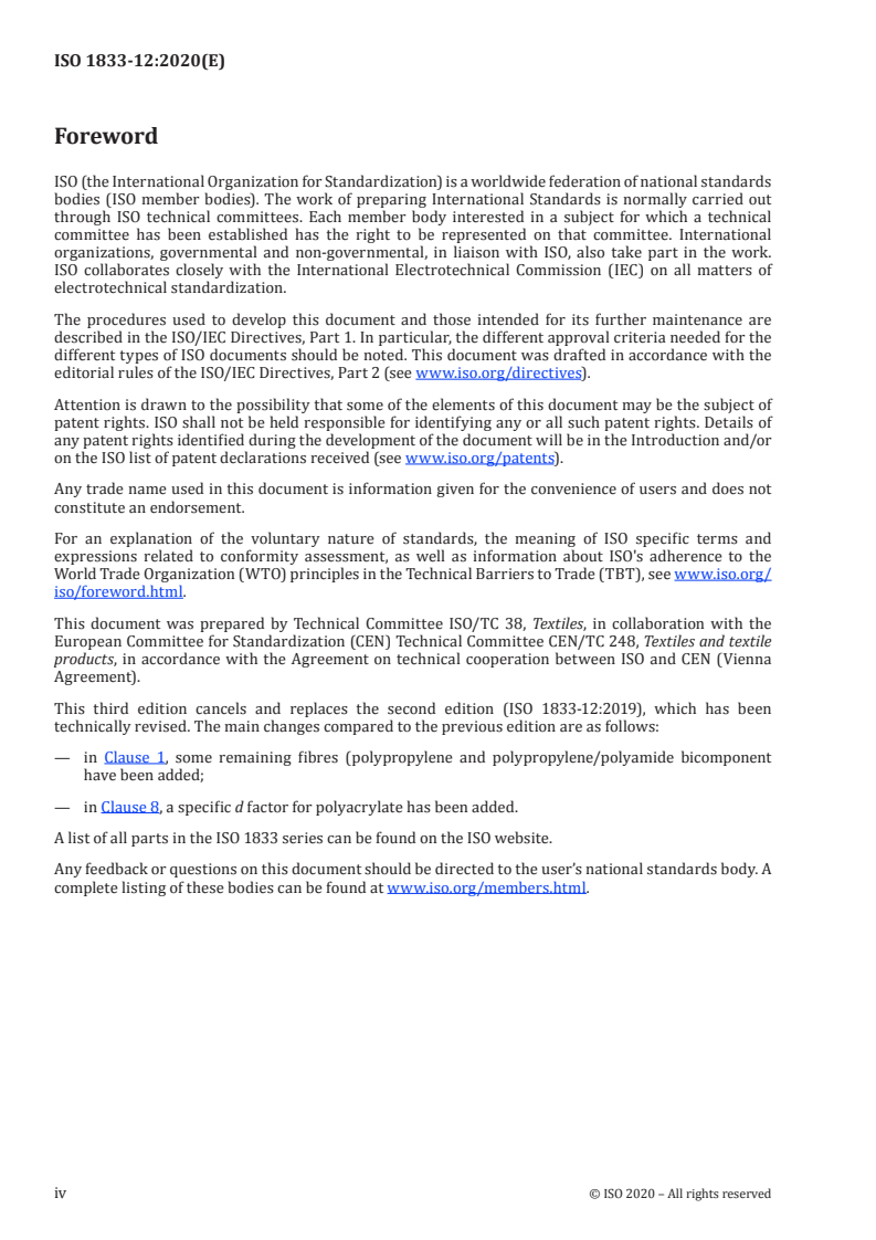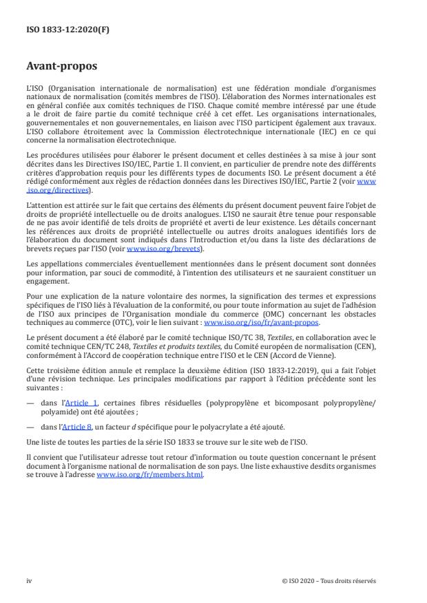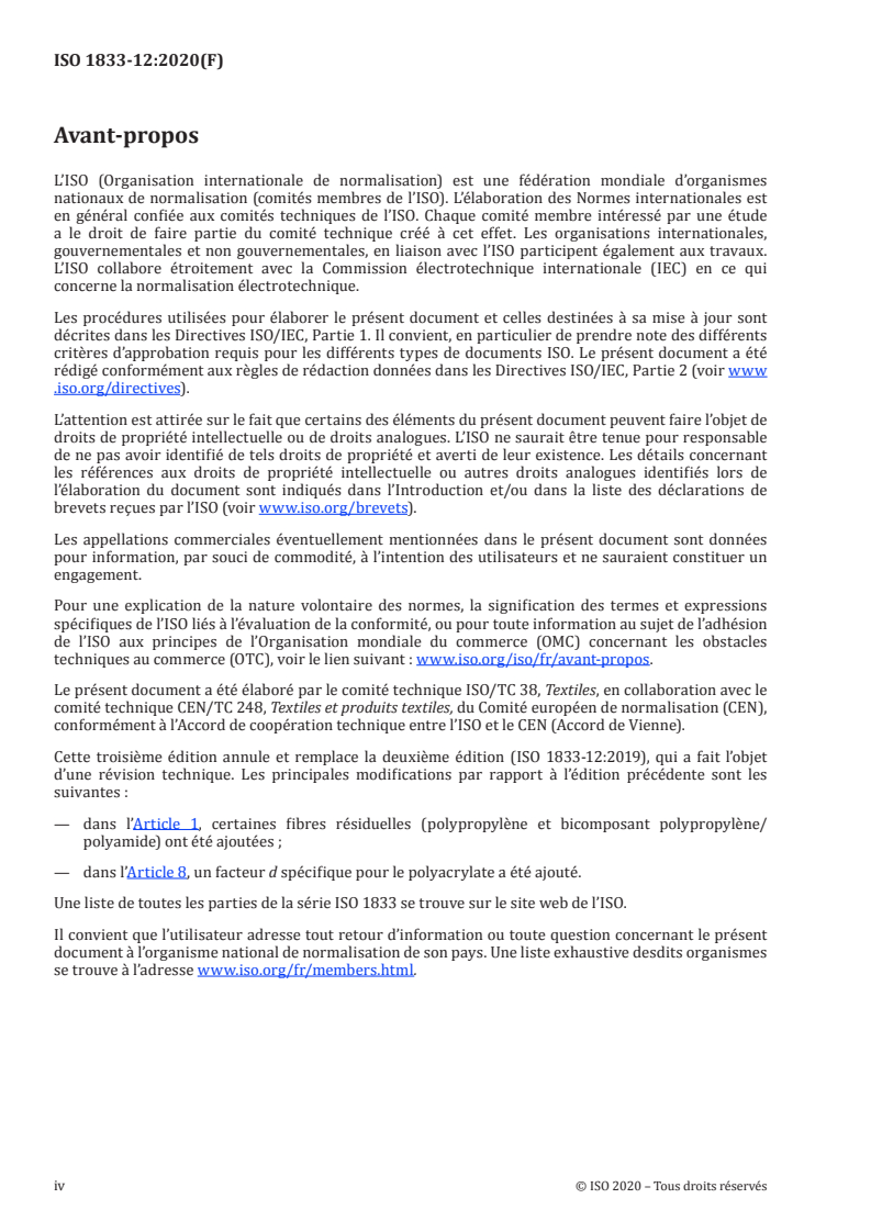 Cette troisième édition annule et remplace la deuxième édition (ISO 1833-12:2019), qui a fait l’objet