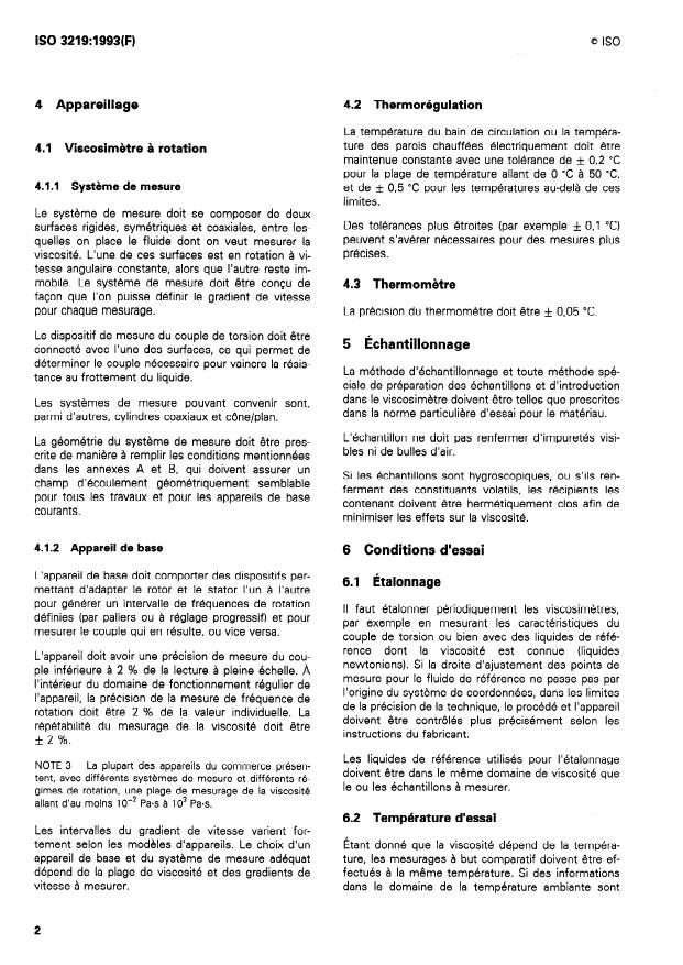 ISO 3219:1993 is a standard published by the International Organization for Standardization (ISO). Its full title is "Plastics — Polymers/resins in the liquid state or as emulsions or dispersions — Determination of viscosity using a rotational viscometer with defined shear rate". This standard covers: General specification for rotational viscometers for the determination of the viscosity of polymers in the liquid or liquidlike state.