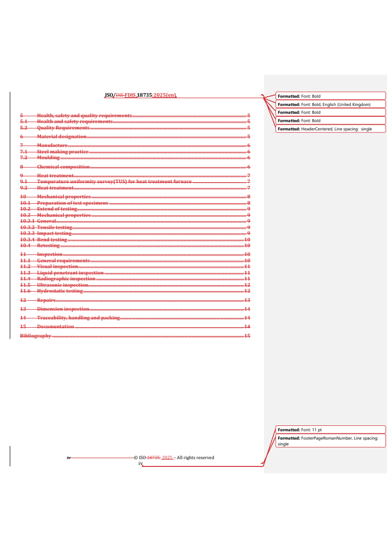 REDLINE ISO/FDIS 18735 - Ships and marine technology — High-manganese austenitic steel — Specification for high-manganese austenitic steel castings for cryogenic temperature Released:18. 11. 2025