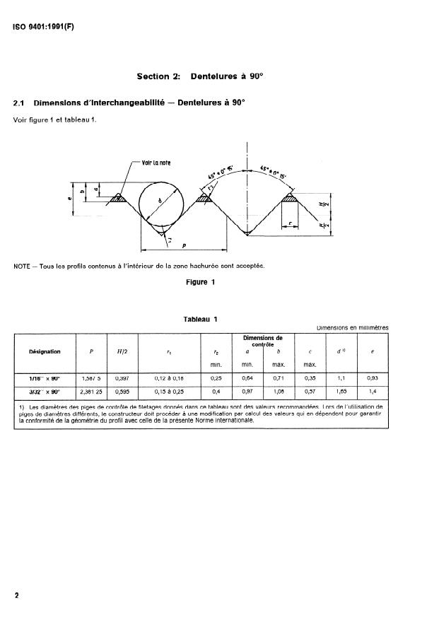 La présente Norme internationale prescrit les dimensions des dentelures à 90” et 60” et les dimensions des