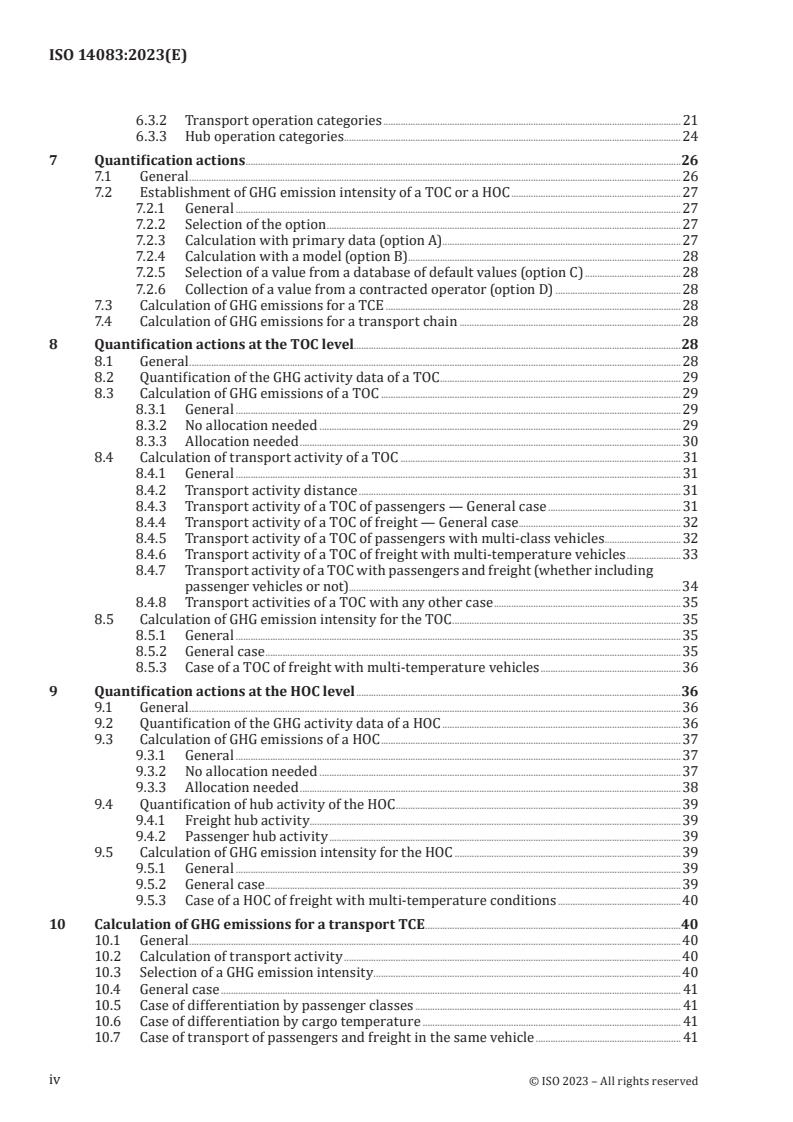 ISO 14083:2023 is a standard published by the International Organization for Standardization (ISO). Its full title is "Greenhouse gases - Quantification and reporting of greenhouse gas emissions arising from transport chain operations". This standard covers: This document establishes a common methodology for the quantification and reporting of greenhouse gas (GHG) emissions arising from the operation of transport chains of passengers and freight.