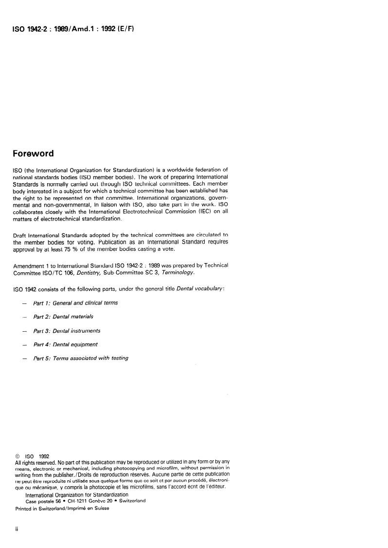 IS0 1942 consists of the following parts, under the general title Dental vocabulary: