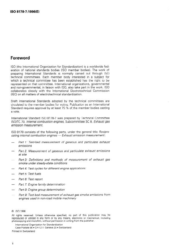 ISO 8178-7:1996 - Reciprocating internal combustion engines -- Exhaust emission measurement