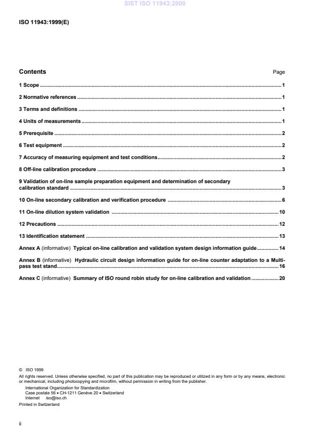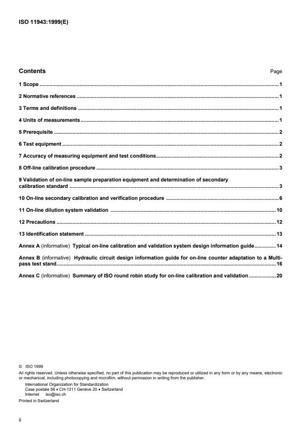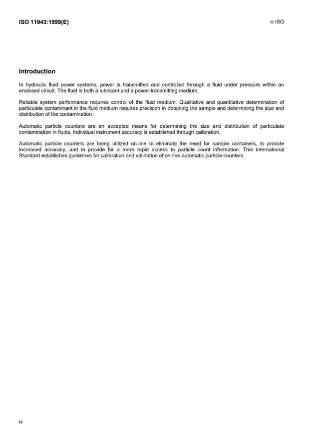 ISO 11943:1999 - Hydraulic fluid power -- On-line automatic particle-counting systems for liquids -- Methods of calibration and validation