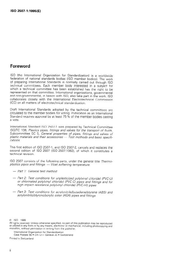ISO 2507-1:1995 - Thermoplastics pipes and fittings -- Vicat softening temperature