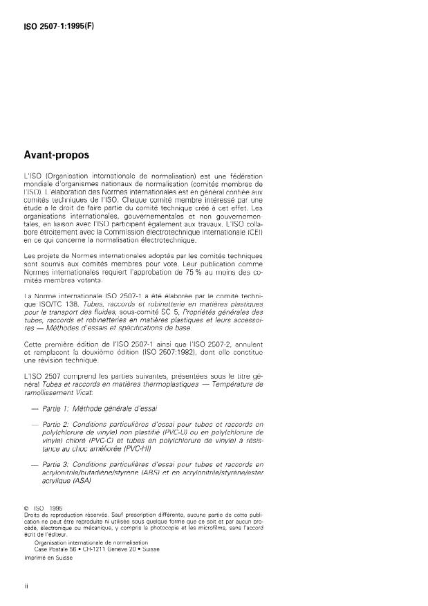 ISO 2507-1:1995 - Tubes et raccords en matieres thermoplastiques -- Température de ramollissement Vicat