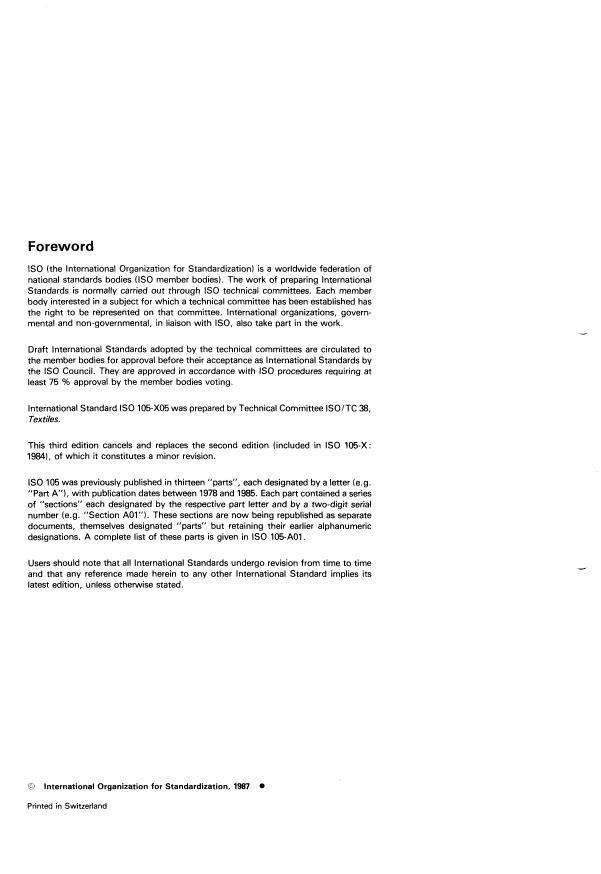 International Standard IS0 105-X05 was prepared by Technical Committee ISO/TC 38,