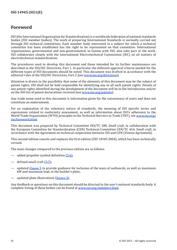 Keywords: ISO 14945:2021, builder's plate, small craft, boat builder, maximum load, persons capacity, CE marking, outboard engine, propeller symbol.
