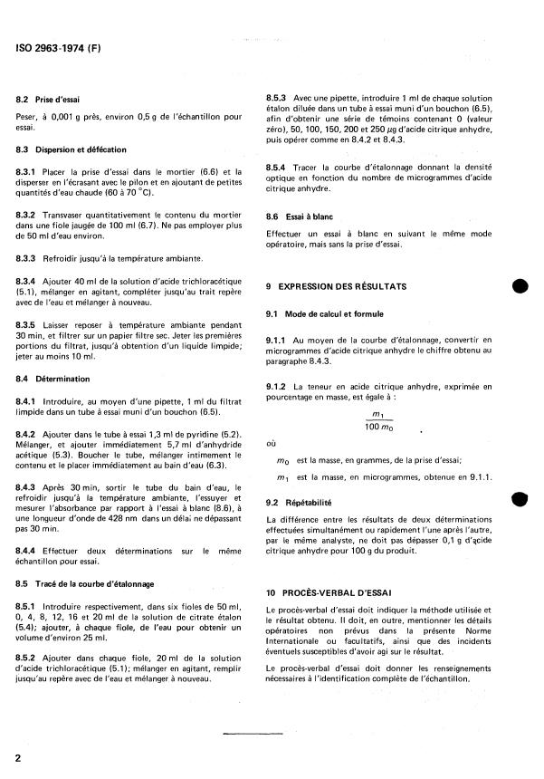ISO 2963:1974 is a standard published by the International Organization for Standardization (ISO). Its full title is "Cheese and processed cheese products — Determination of citric acid content (Reference method)". This standard covers: Cheese and processed cheese products — Determination of citric acid content (Reference method)