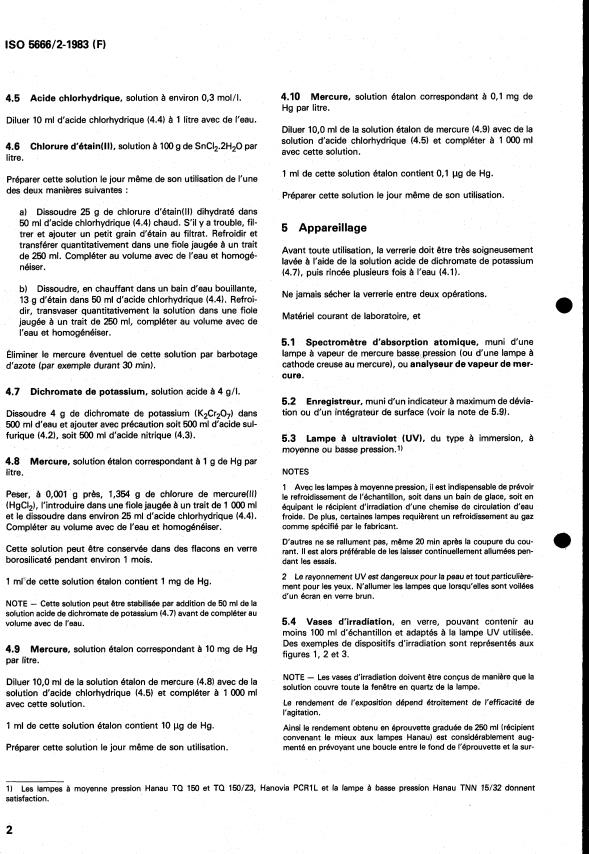 ISO 5666-2:1983 - Qualité de l'eau -- Dosage du mercure total par spectrométrie d'absorption atomique sans flamme