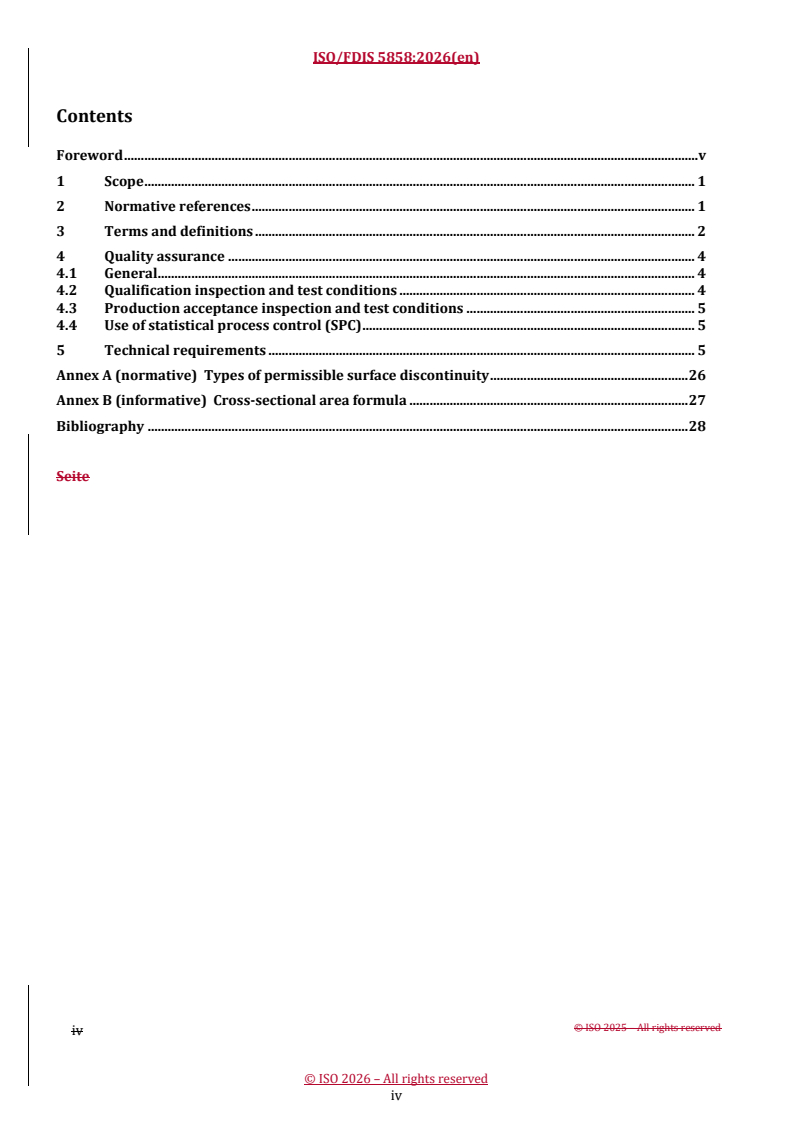 REDLINE ISO/FDIS 5858 - Aerospace — Nuts, self-locking, with maximum operating temperature less than or equal to 425 °C — Procurement specification Released:6. 02. 2026