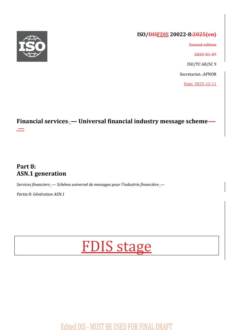 REDLINE ISO/FDIS 20022-8 - Financial services — Universal financial industry message scheme — Part 8: ASN.1 generation Released:17. 12. 2025