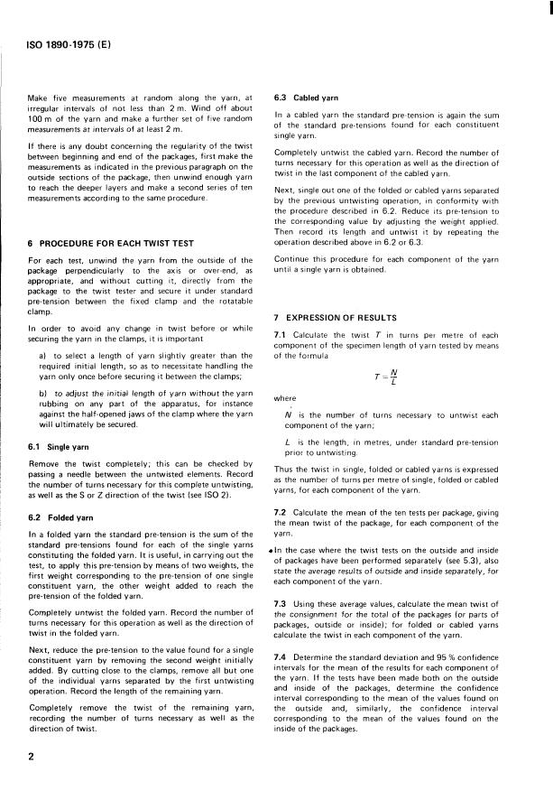ISO 1890:1975 - Textile glass products — Continuous filament yarns and staple fibre yarns — Determination of twist Released:6/1/1975
