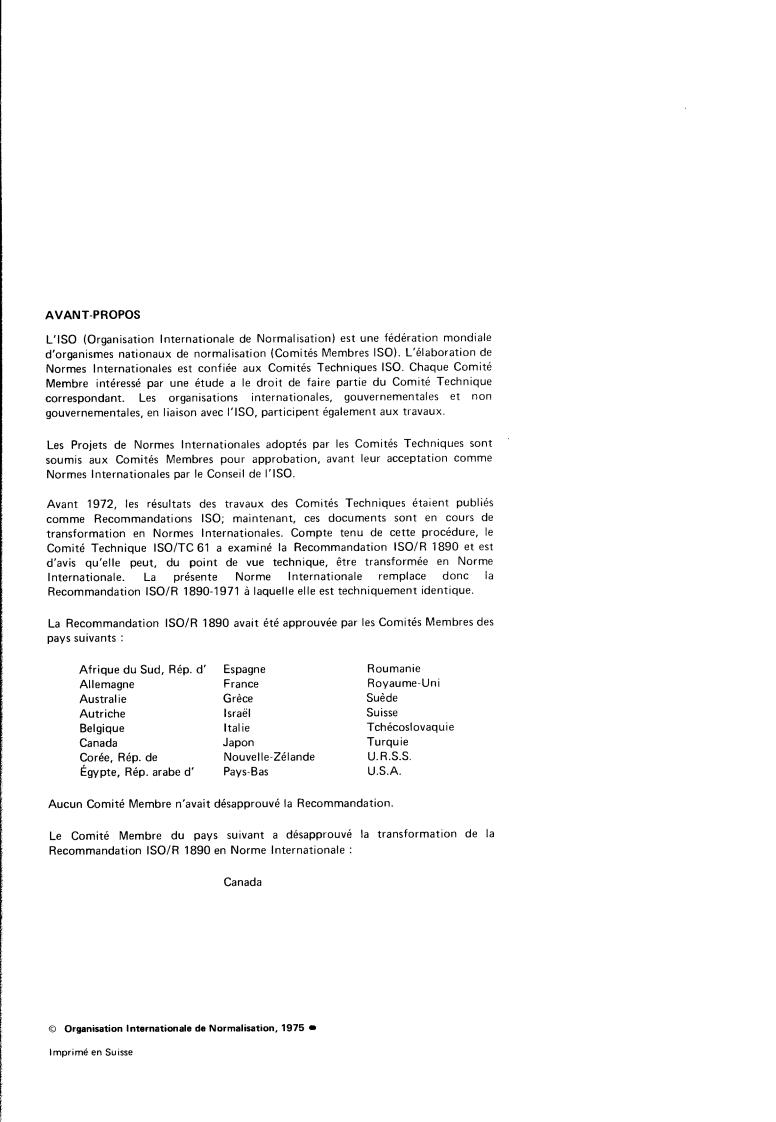 Committee lSO/TC 61 has reviewed IS0 Recommendation R 1890 and found it