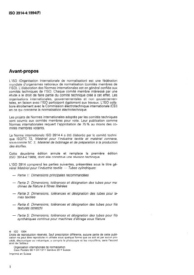 ISO 3914-4:1994 - Matériel pour l'industrie textile -- Tubes cylindriques