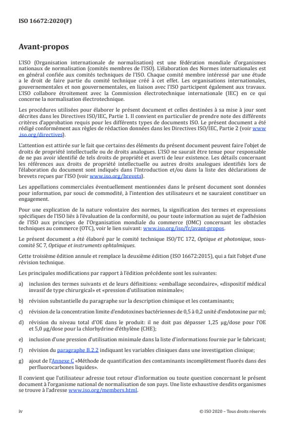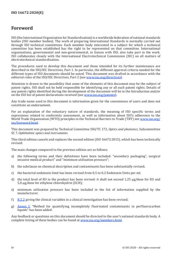 - Annexes: Normative intraocular implantation test, informative clinical investigation guidance, and Annex C method for quantifying incompletely fluorinated contaminants in perfluorocarbon liquids.