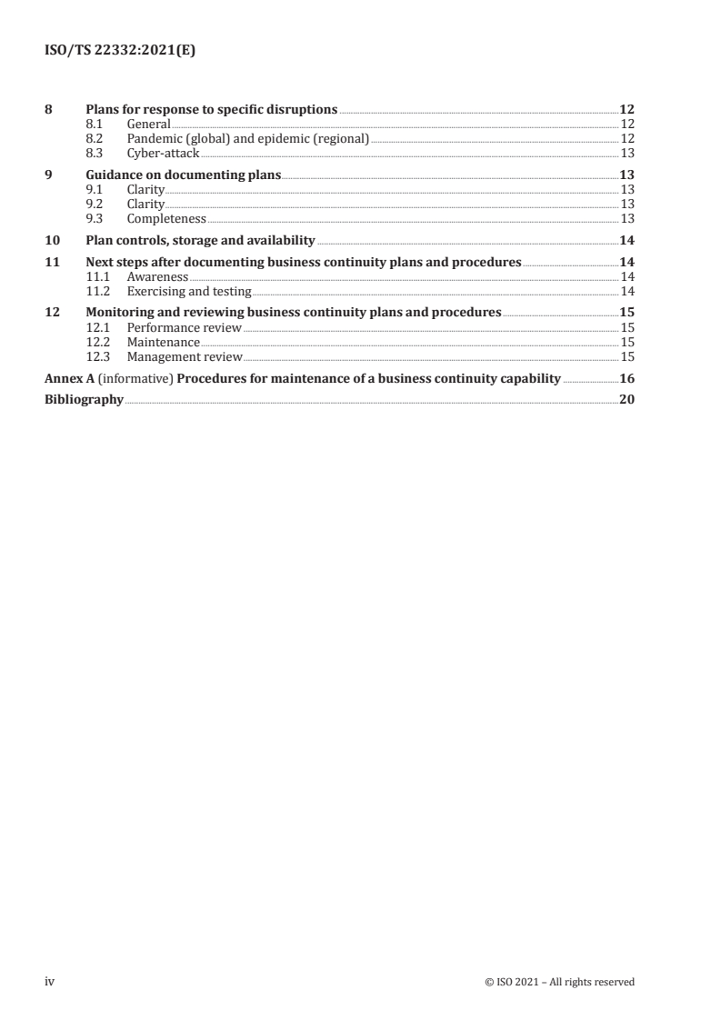 ISO/TS 22332:2021 - Security and resilience — Business continuity management systems — Guidelines for developing business continuity plans and procedures Released:5/28/2021