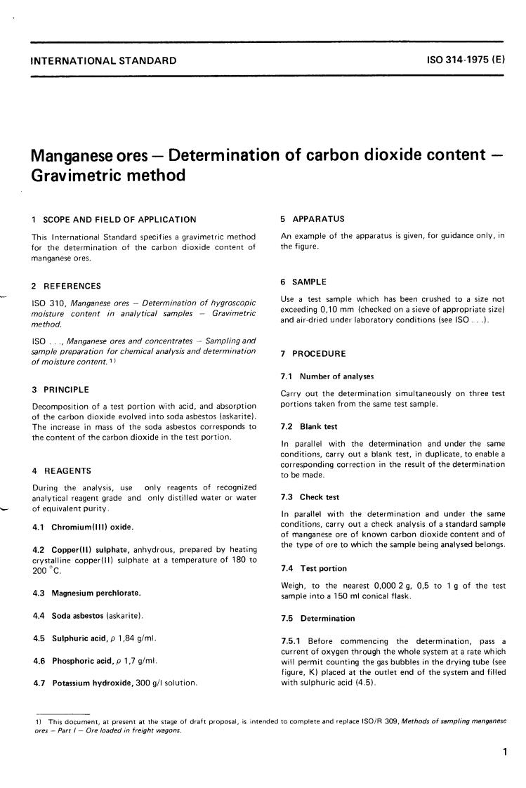 UDC 669.74 : 543.21 : 546.264-31 Ref. No. IS0 314-1975 (E)