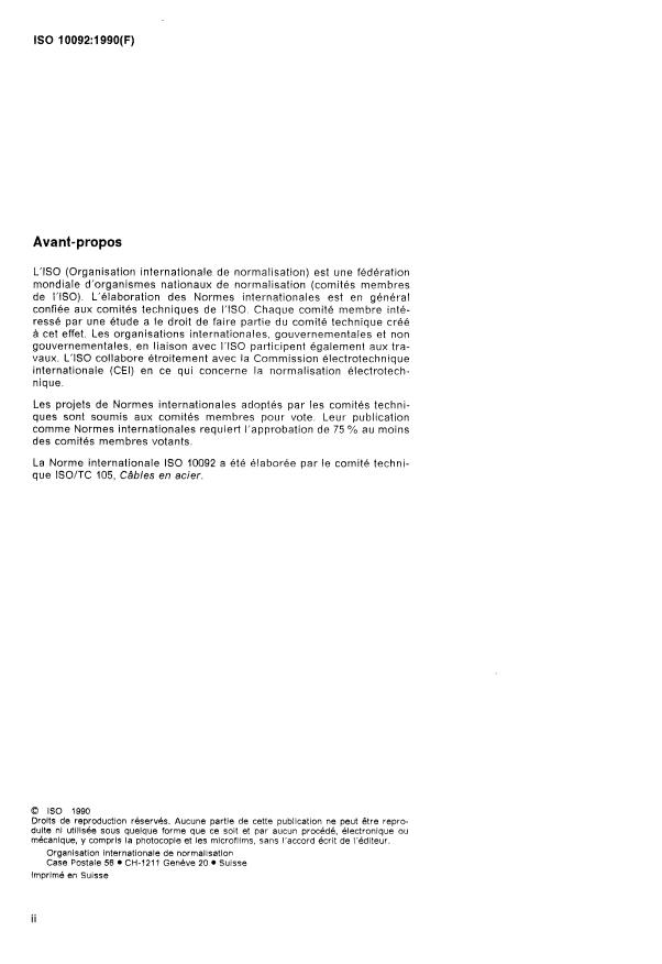 ISO 10092:1990 - Câbles en acier a haute résistance -- Spécifications