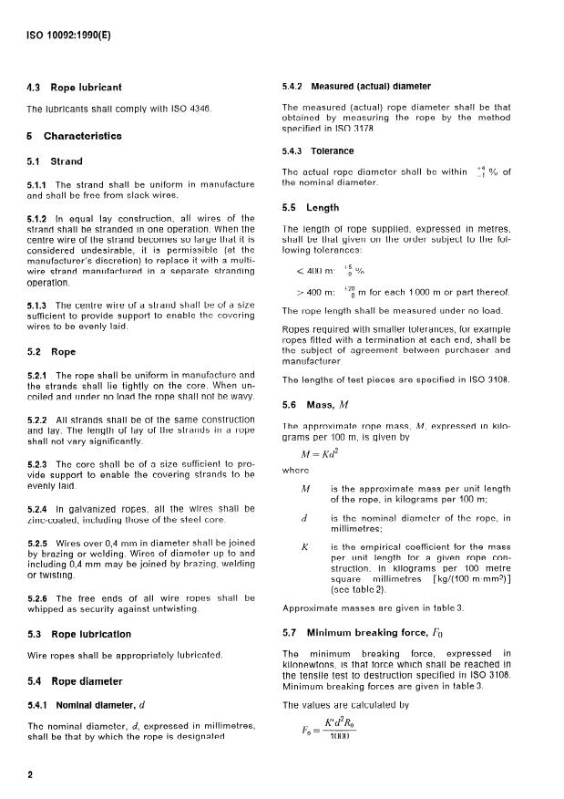 ISO 10092:1990 is a standard published by the International Organization for Standardization (ISO). Its full title is "High breaking load steel wire ropes — Specifications". This standard covers: Specifies a range of round-strand steel wire ropes for use where a higher-than-normal strength to diameter ratio is required. Does not apply to ropes for use in: mine hoisting; aircraft controls; deep drilling, aerial ropeways and funiculars; lifts and elevators.