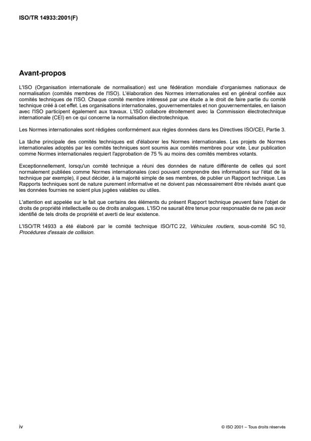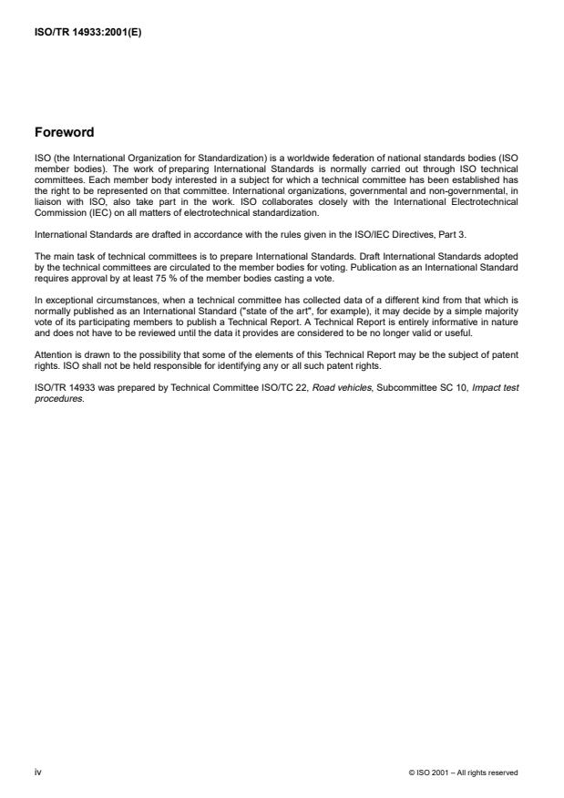 ISO/TR 14933 was prepared by Technical Committee ISO/TC 22, Road vehicles, Subcommittee SC 10, Impact test