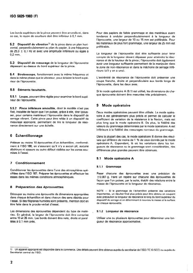ISO 5629:1983 - Papier et carton -- Détermination de la résistance a la flexion -- Méthode par résonance
