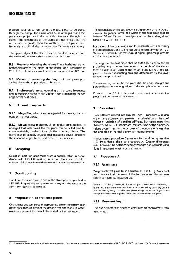 ISO 5629:1983 - Paper and board -- Determination of bending stiffness -- Resonance method