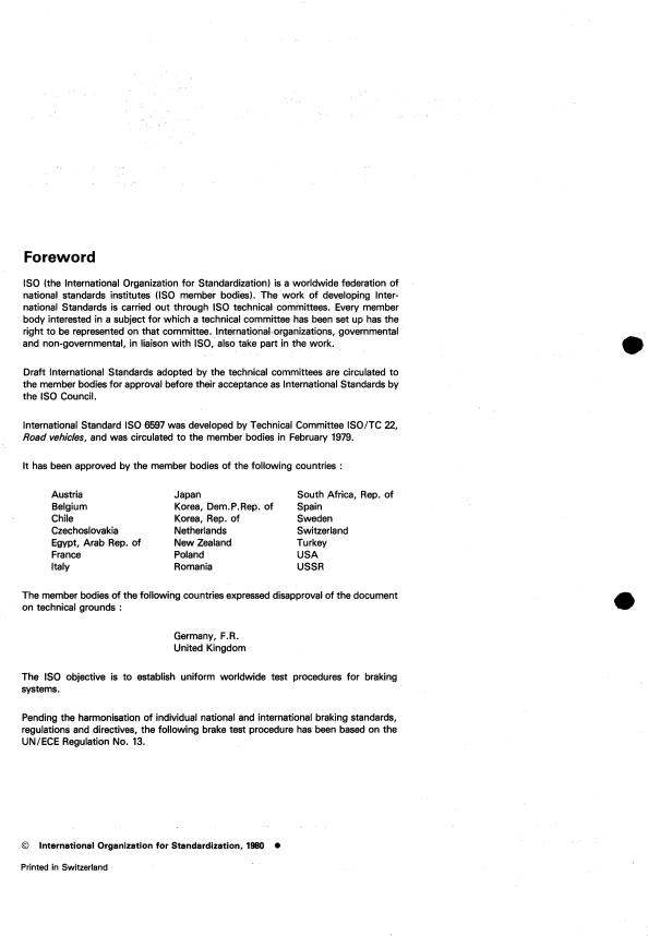 ISO 6597:1980 - Road vehicles -- Passenger car braking systems -- Measurement of the braking performance