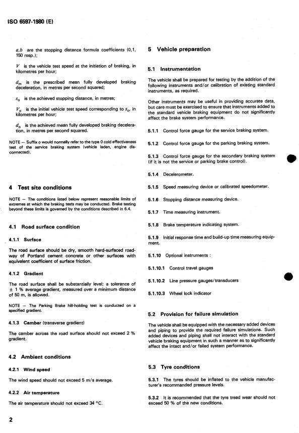 ISO 6597:1980 is a standard published by the International Organization for Standardization (ISO). Its full title is "Road vehicles — Passenger car braking systems — Measurement of the braking performance". This standard covers: Road vehicles — Passenger car braking systems — Measurement of the braking performance