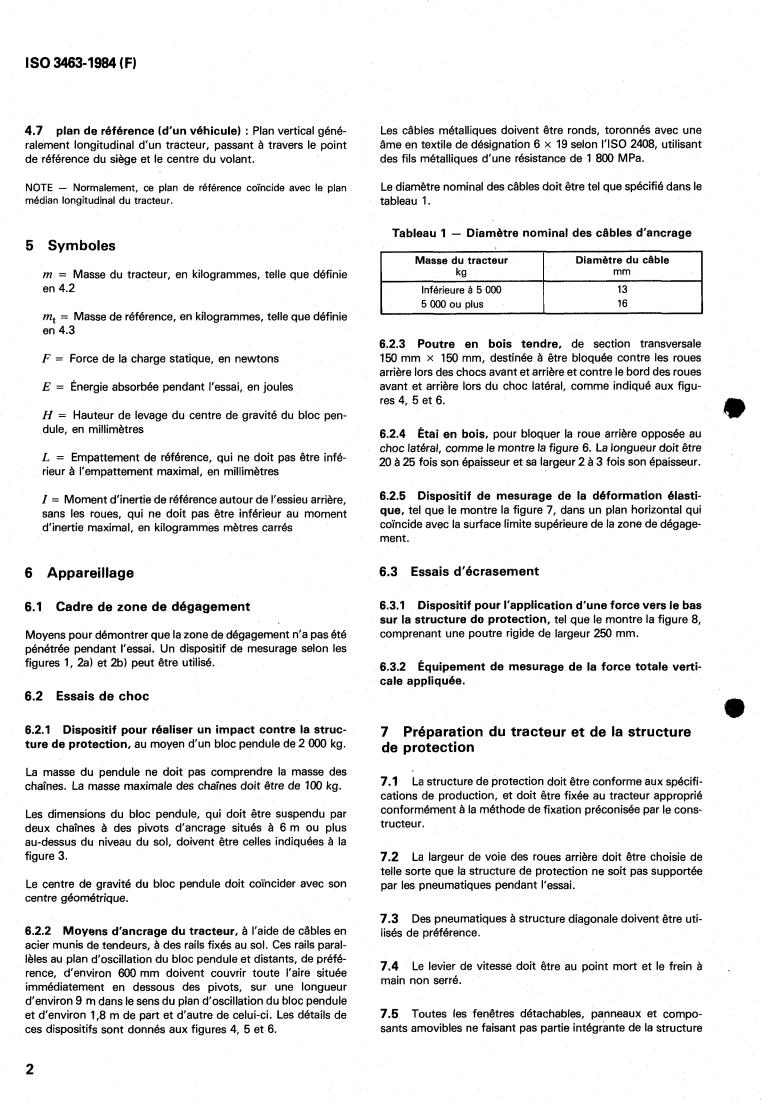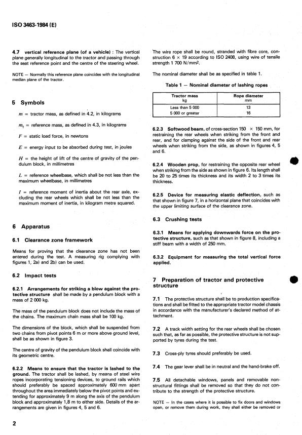ISO 3463:1984 is a standard published by the International Organization for Standardization (ISO). Its full title is "Agricultural and forestry wheeled tractors — Protective structures — Dynamic test method and acceptance conditions". This standard covers: Agricultural and forestry wheeled tractors — Protective structures — Dynamic test method and acceptance conditions