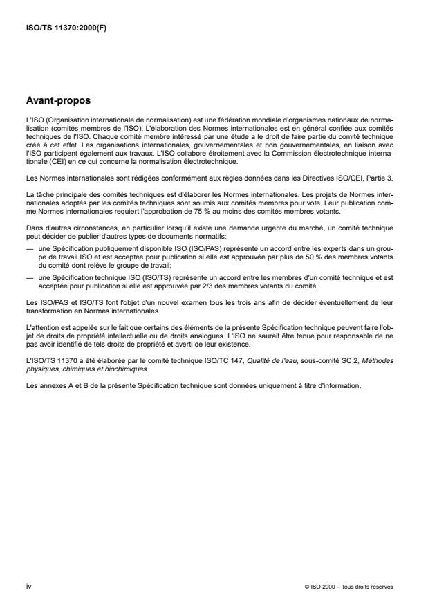 ISO/TS 11370:2000 is classified under the following ICS (International Classification for Standards) categories: 13.060.50 - Examination of water for chemical substances. The ICS classification helps identify the subject area and facilitates finding related standards.