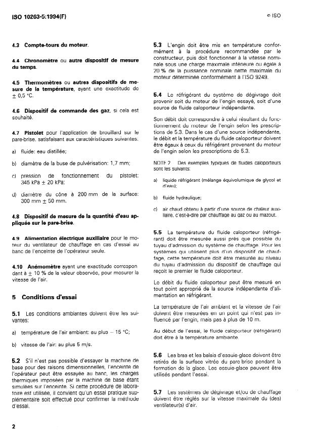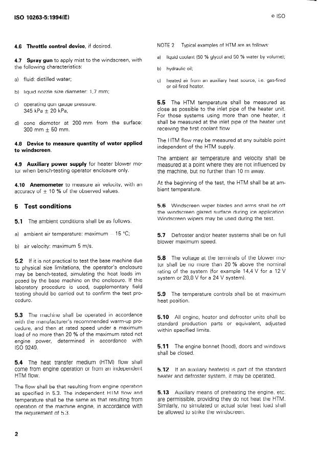 ISO 10263-5:1994 is a standard published by the International Organization for Standardization (ISO). Its full title is "Earth-moving machinery — Operator enclosure environment — Part 5: Windscreen defrosting system test method". This standard covers: Specifies a test method to determine the performance of windscreen defrosting systems of earth-moving machinery, fitted with an operator enclosure and a device for defrosting the windscreen.