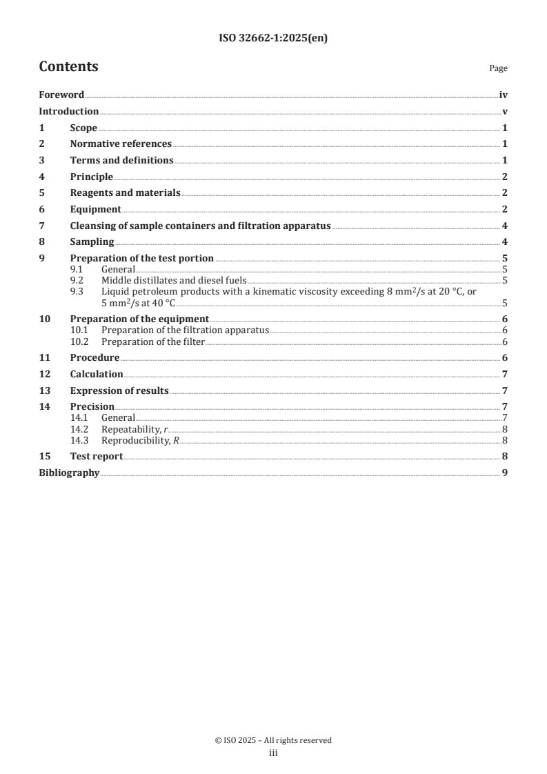 Keywords: ISO 32662‑1:2025, total contamination, diesel fuels, middle distillates, FAME, kinematic viscosity, vacuum filtration, fuel quality testing.