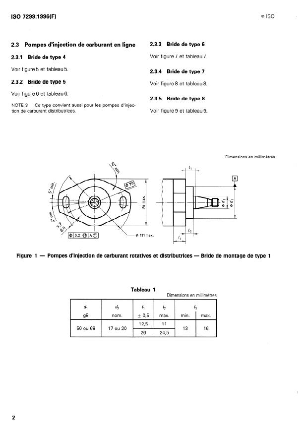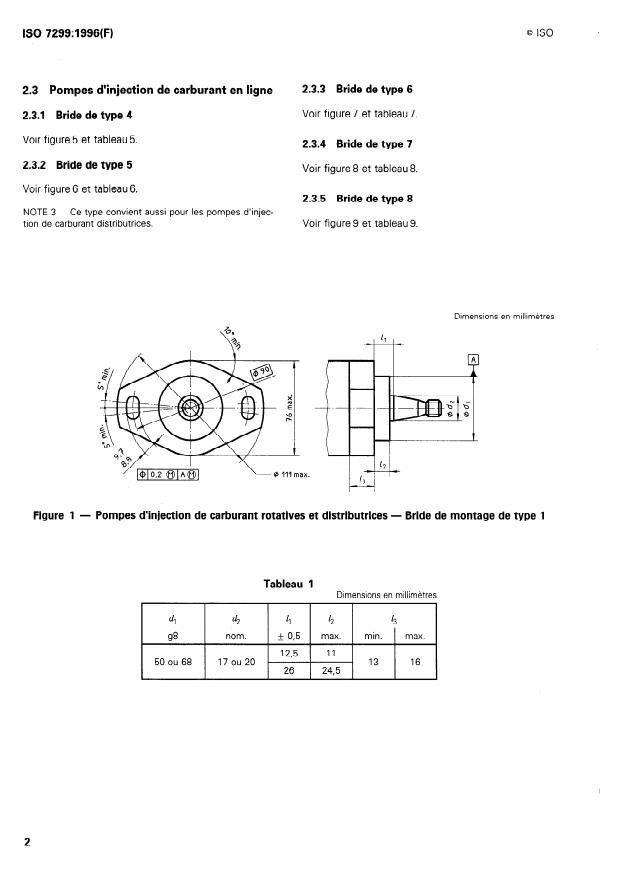 ISO 7299:1996 - Moteurs diesels -- Brides de montage des pompes d'injection de combustible