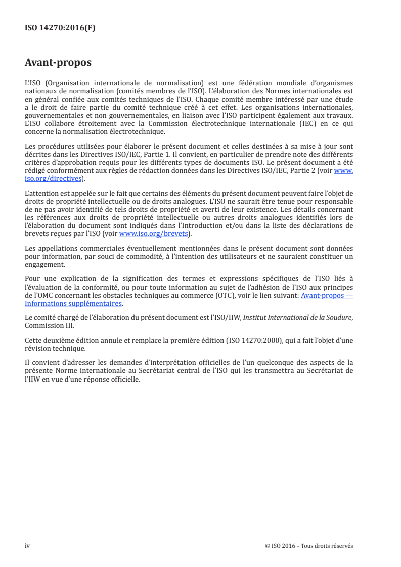 Cette deuxième édition annule et remplace la première édition (ISO 14270:2000), qui a fait l’objet d’une