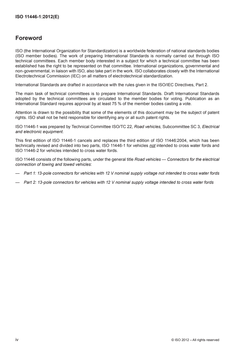 ISO 11446-1 was prepared by Technical Committee ISO/TC 22, Road vehicles, Subcommittee SC 3, Electrical