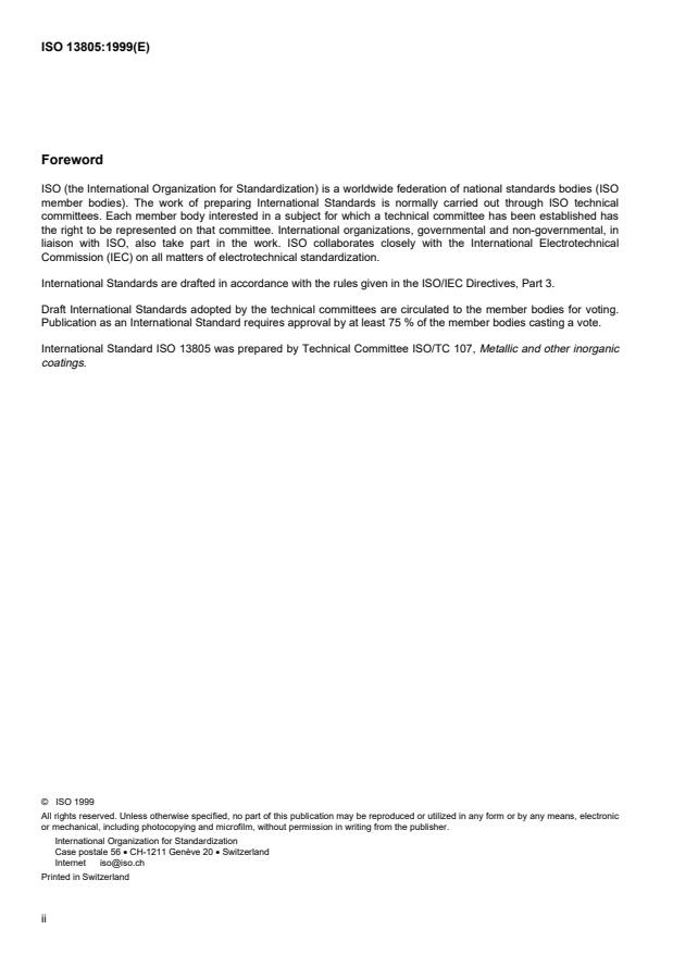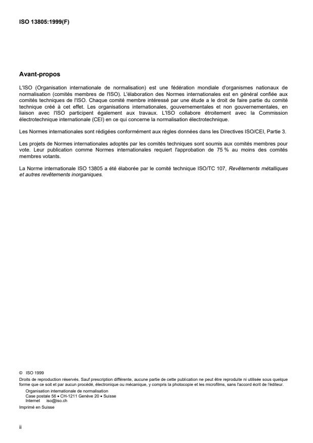 La Norme internationale ISO 13805 a été élaborée par le comité technique ISO/TC 107, Revêtements métalliques