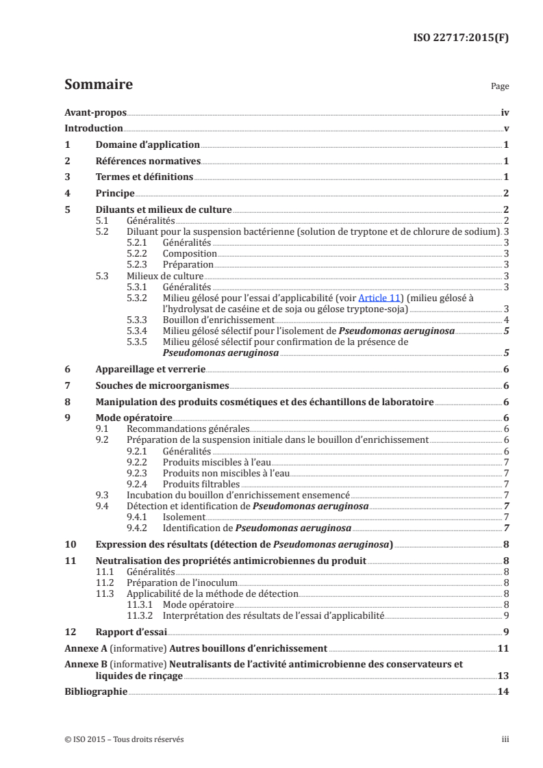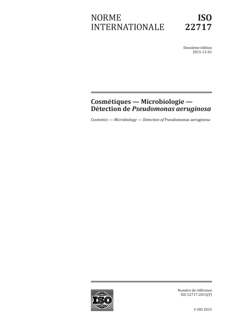 ISO 22717:2015 - Cosmétiques — Microbiologie — Détection de Pseudomonas aeruginosa/18/2015