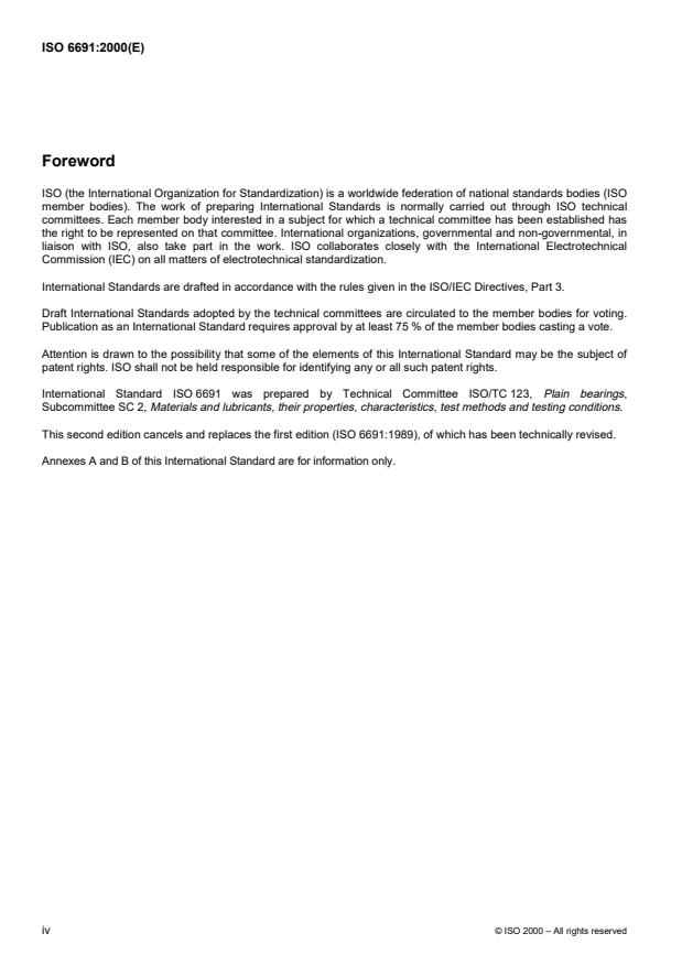 ISO 6691:2000 - Thermoplastic polymers for plain bearings -- Classification and designation