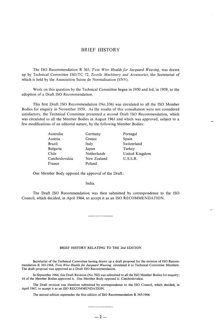 The 1SO Recommendation R 365, Twin Wire Healds for Jacquard Weaving, was drawn