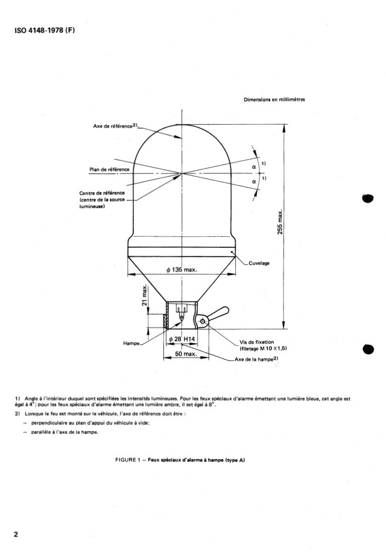 a Véhicules routiers - Feux spéciaux d‘alarme - Dimensions