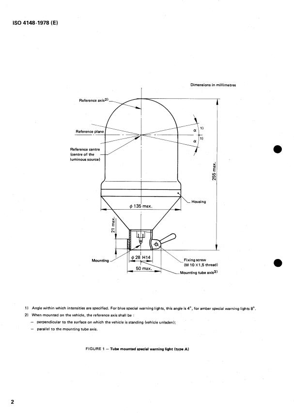 ISO 4148:1978 is a standard published by the International Organization for Standardization (ISO). Its full title is "Road vehicles — Special warning lights — Dimensions". This standard covers: Road vehicles — Special warning lights — Dimensions