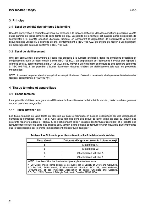 faut par conséquent une gamme de tissus témoins de laine teinte en bleu pour chaque éprouvette soumise aux