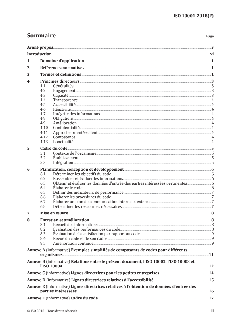 ISO 10001:2018 - Management de la qualité -- Satisfaction du client -- Lignes directrices relatives aux codes de conduite des organismes